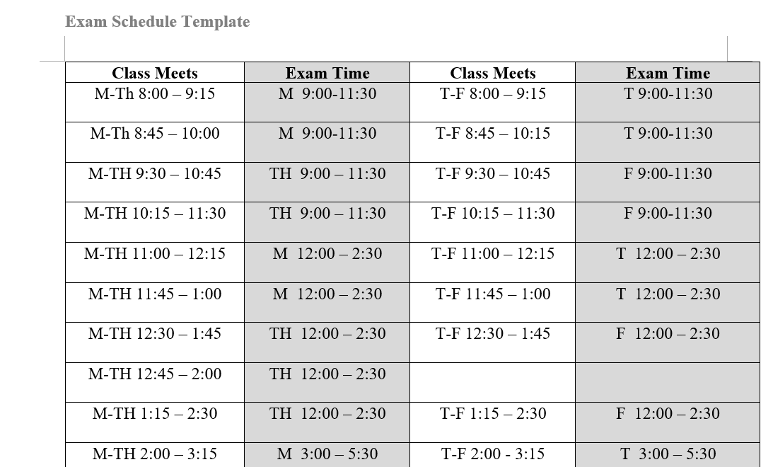 Exams Time Table